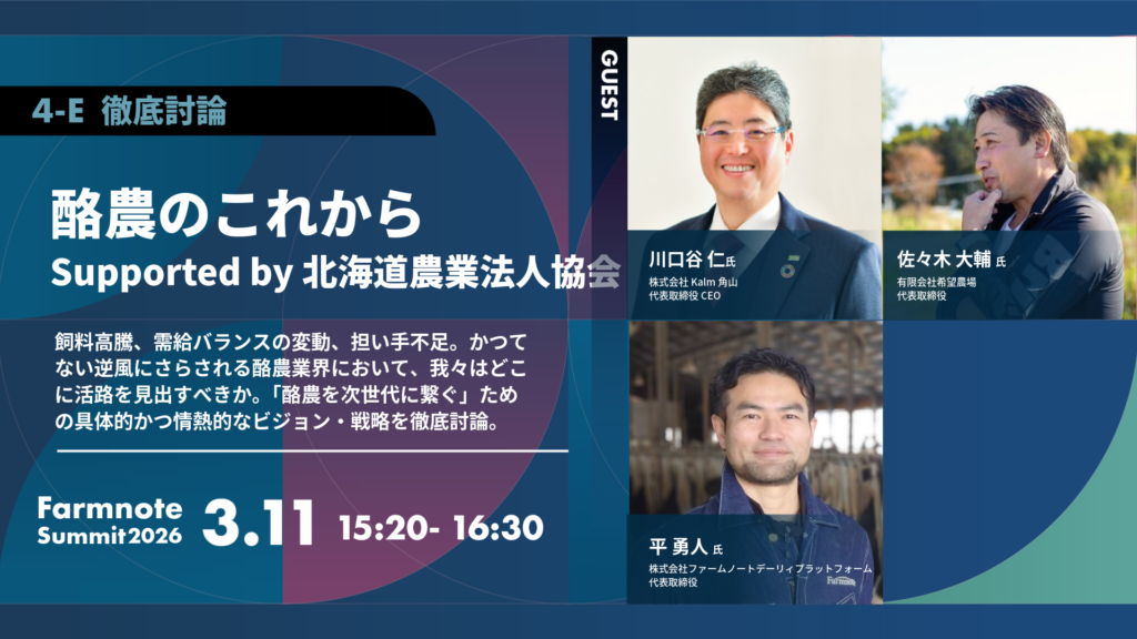 3/11(水)帯広開催の「Farmnote Summit 2026」。 当日のプログラムが続々と固まっています!今回も新たに決定したセッションをご紹介します。